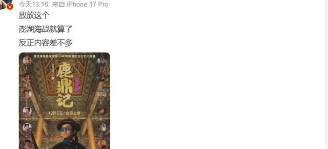 他今年贺岁档还有一部主旋律大片《澎湖海战》,已经压了一年时间才定档,很多网友看到这部电影的题材,都觉得隐约有点不对,拍得不好就会被骂的很惨。