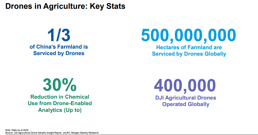 摩根士丹利预测,在AI技术持续迭代、政策支持加码、应用场景扩容的多重驱动下,全球无人机市场将迎来爆发式增长。2030年全球无人机数量将达1.3亿架,2040年增至9亿架,2050年将突破20亿架。