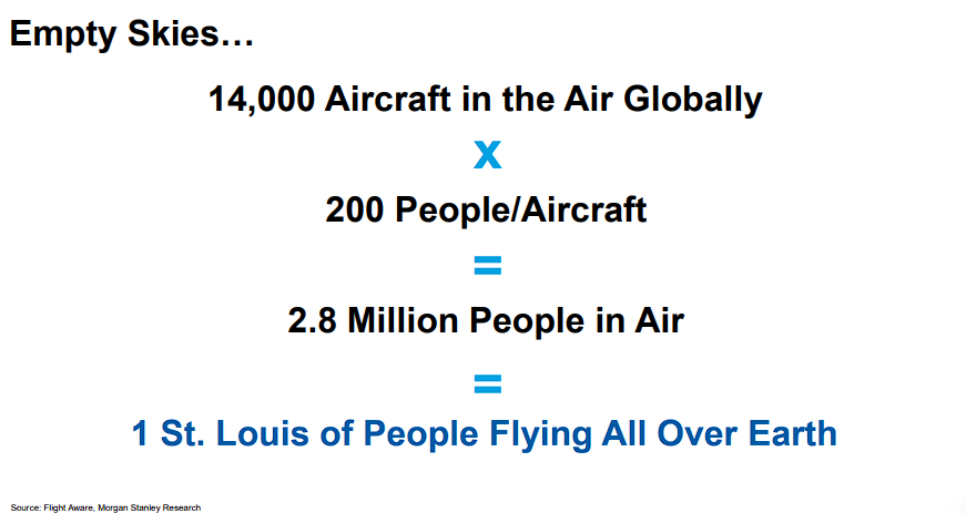 大摩认为,解决地面交通拥堵的终极方案是利用“空荡荡的天空”。目前全球空中仅有约14000架飞机,而在地面拥堵至极。