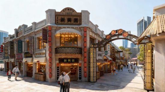 在空间规划上,项目构建起“两轴延展、鱼骨状纵深”的立体生活格局。主街定位为“时尚潮流轴”,聚焦时尚艺术与潮流业态;新民胡同打造为“市井烟火轴”,集聚老字号与特色小吃。两条主轴一动一静、一潮一俗,构筑起街区的商业与情感骨架。